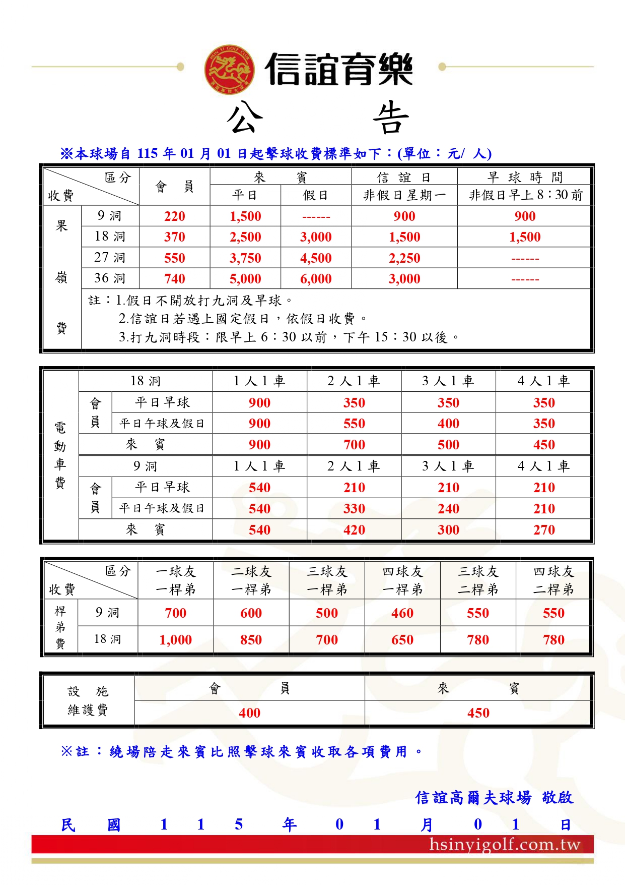 115年度信誼球場擊球收費公告