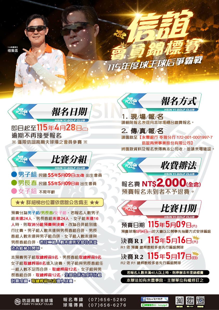 二、晉級決賽者免收果嶺費、維護費及電動車費,但保險費及桿弟費自理。