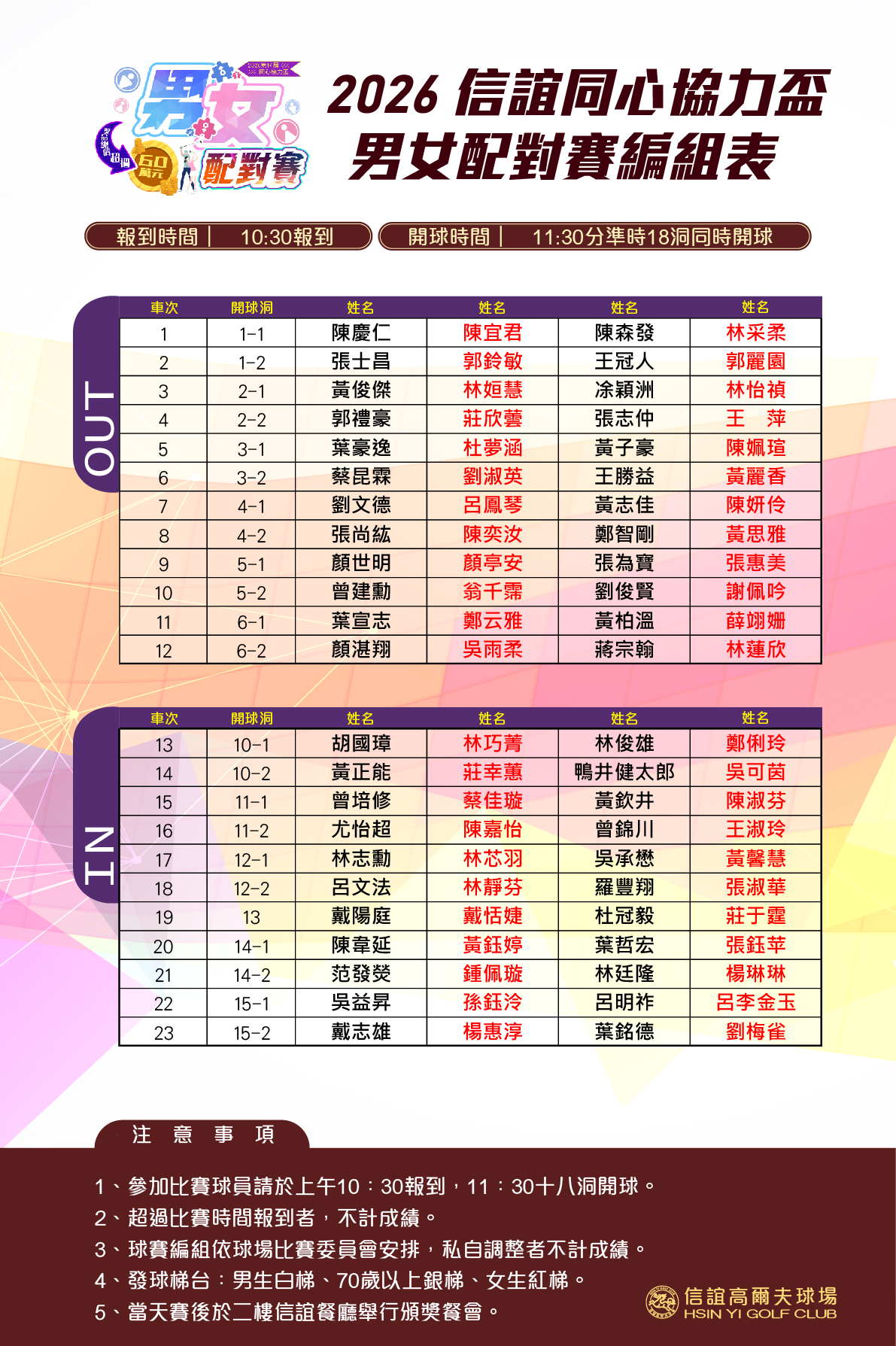 參加比賽球員請於上午10:30報到,11:30十八洞開球。