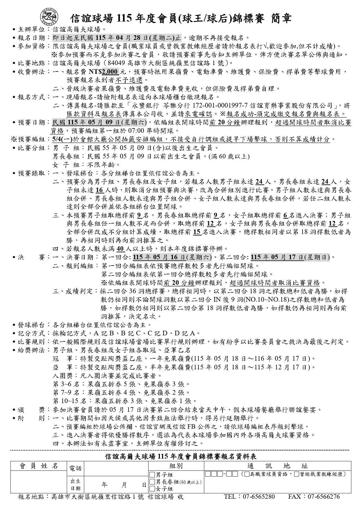 二、晉級決賽者免收果嶺費、維護費及電動車費,但保險費及桿弟費自理。